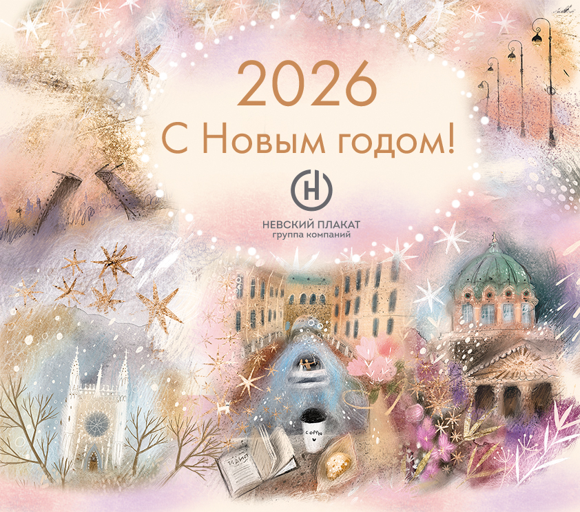 Коллектив группы компаний «Невский Плакат» поздравляет вас с наступающим Новым 2026 Годом! Желаем Вам крепкого здоровья, счастья, семейного уюта и успехов во всём! В новом году пусть каждый день вдохновляет на смелые шаги и яркие идеи. Вместе мы воплотим в жизнь даже самые амбициозные проекты! |